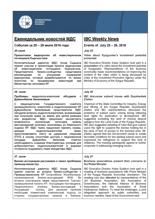 If you want to subscribe on our weekly digest connect with us by corporate@ibc.kg.